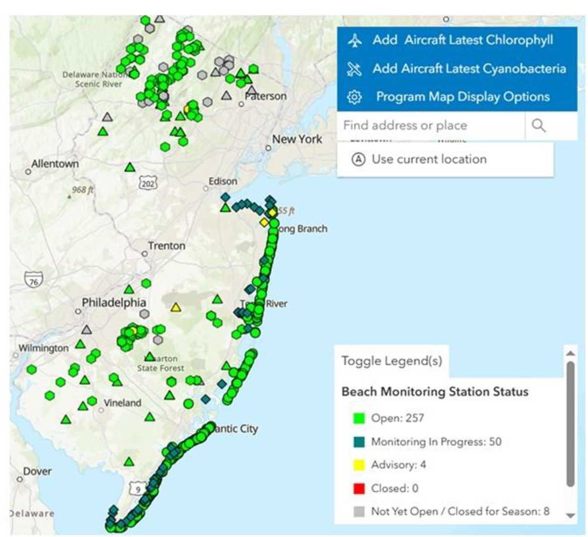 You can check the monitoring station status of beaches throughout New Jersey, as well as learn more about the CCMP and other associated programs, by searching the map on the NJDEP Beach Monitoring Program homepage (Figure 4).